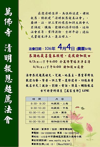 慎終追遠‧禮報親恩~萬佛山106年清明超薦法會